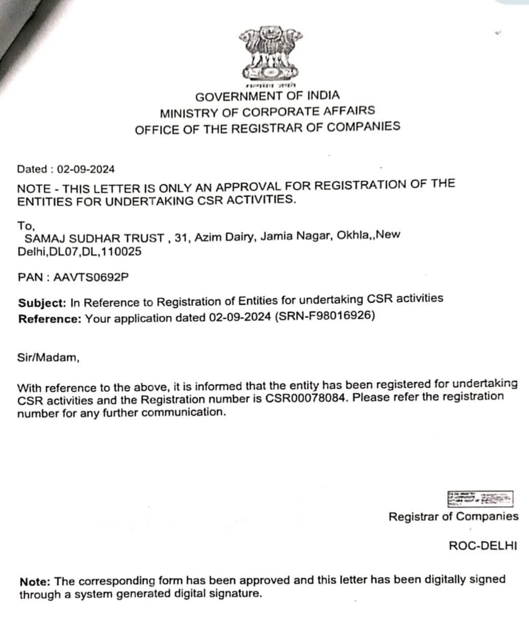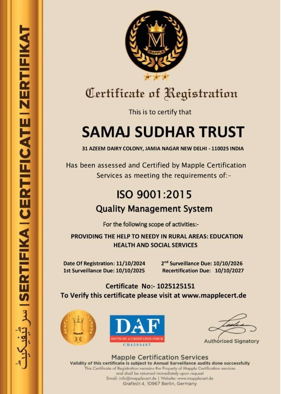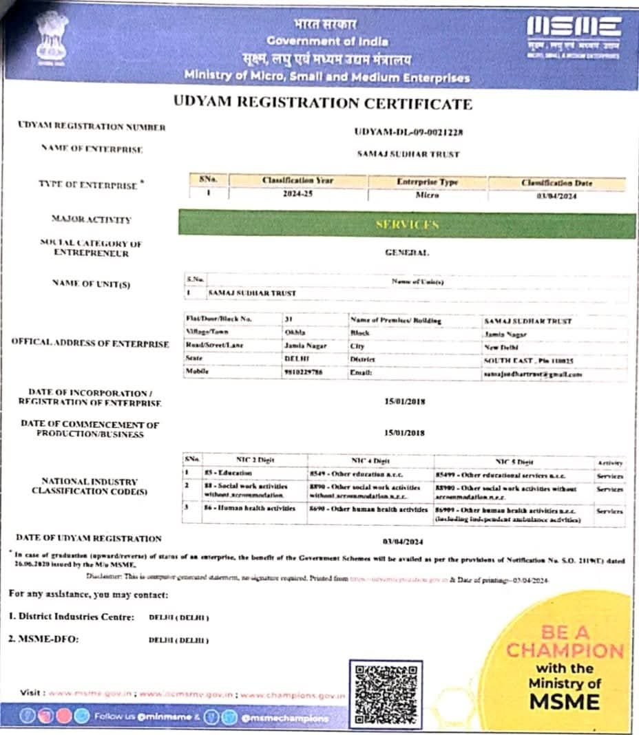 Samaj Sudhar Trust is a fully registered & certified NGO